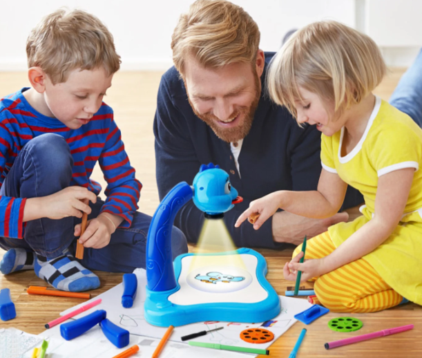 ✅ Los niños pueden dibujar según el patrón proyectado en la mesa o en el cuaderno de dibujo.